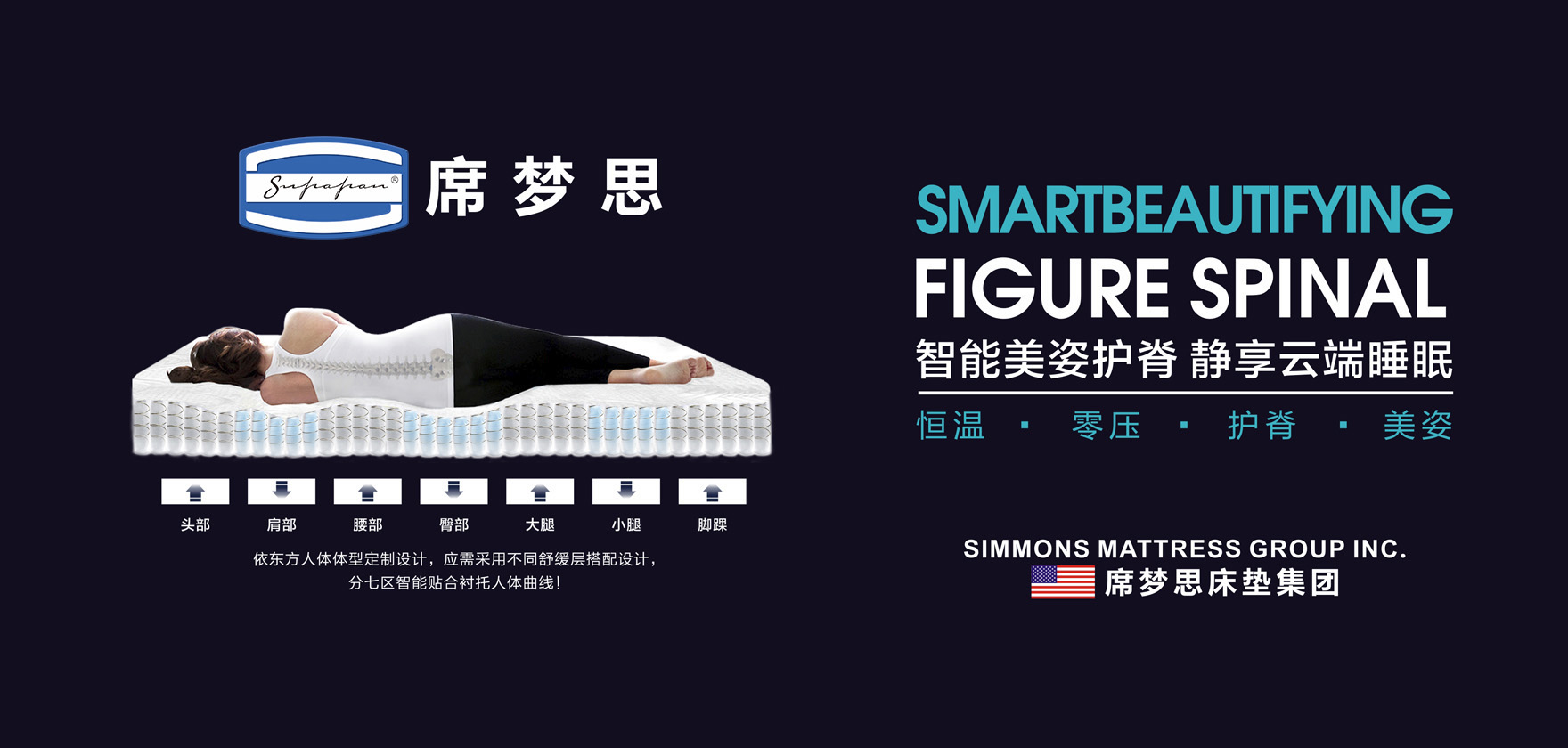 American Simmons席夢思床墊,1881年6月26日誕生于美國伊利諾伊州,是一個全球性專業的健康睡眠品牌。憑借近100多年的專業制床經驗與產品服務,American Simmons席夢思床墊贏得了全球眾多酒店(管理集團)的信任和青睞,并與之建立了長期戰略合作伙伴關系。這些酒店(管理集團)戰略合作伙伴包括:萬豪酒店及度假酒店、康萊德酒店、希爾頓逸林酒店、麗笙集團、索菲特酒店、亞特蘭蒂斯酒店、JW萬豪酒店、皇冠假日酒店、溫德姆酒店等。